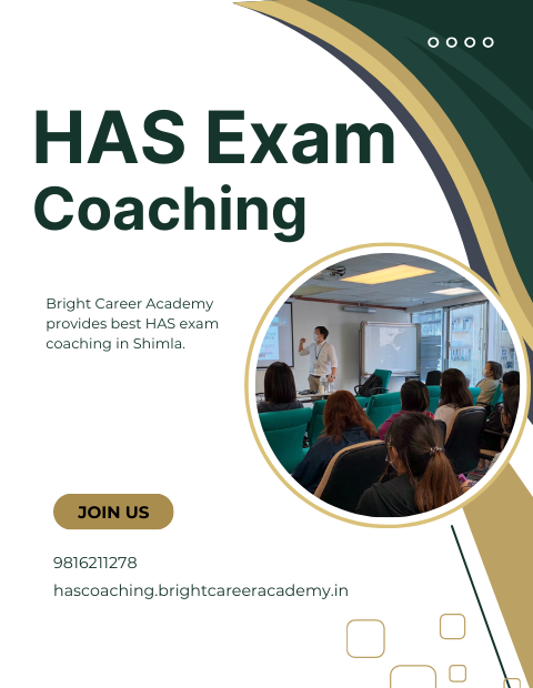 For best HAS exam coaching, you can contact Bright Career academy in Shimla because it provides many facilities, like one-on-one conversation of teacher and student , doubt-clearing sessions, weekly mock test series, regular classes, online classes and more.
