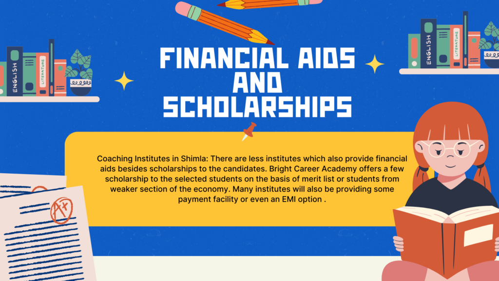 Coaching Institutes in Shimla: There are less institutes which also provide financial aids besides scholarships to the candidates. Bright Career Academy offers a few scholarship to the selected students on the basis of merit list or students from weaker section of the economy. Many institutes will also be providing some payment facility or even an EMI option .