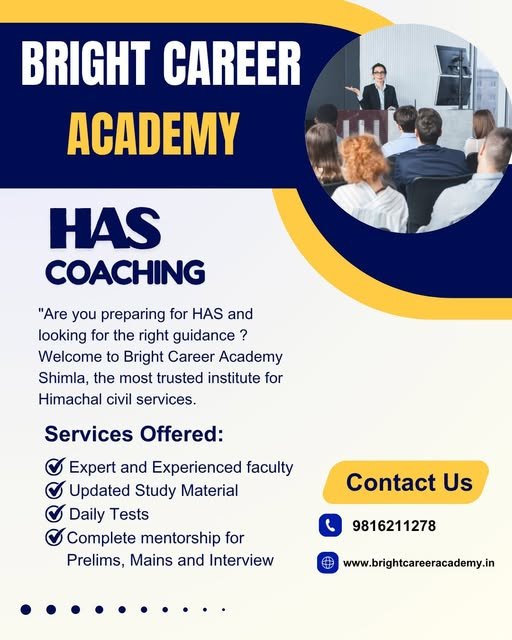 If you are planning to prepare for the Himachal Administrative Services (HAS) exam in 2026, choosing the right coaching institute is the most important decision of your journey. When it comes to HAS Coaching in Shimla, one name that consistently stands out is Bright Career Academy Shimla.